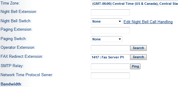 Click on your Sites Menu and open your Headquarters site. Set the Fax Redirect Extension to “Fax Server 1”. That’ll make sure when the ShoreTel system hears a fax tone it redirects the fax to this extension and hands it off to the fax server.