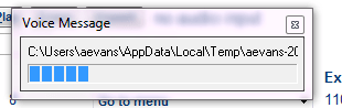 Step 3 – You’ll notice it has a path above the progress bar.This is on your local machine. It downloads the wave file to a temporary location. This is the folder you are looking for: “C:\Users\yourusername\AppData\Local\Temp“. In the picture above the “aevans-20” is the first part of the file name you want. Please note that if you have a long username portions of the path in the box will not be visible.
