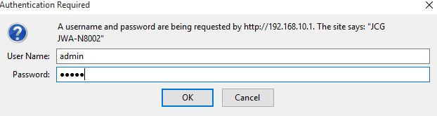 Step 4: Open your web browser. I prefer Firefox these days, but I have used Chrome. If you use Internet Explorer, you may need to use “Compatibility View”. Browse to http://192.168.10.1 enter the username admin, and the password is also admin.